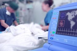 Monitor auf der Krankenstation im Hintergrund der Ärzte