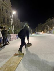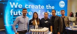 Der CGM-Messestand bei der Jobmesse in Hagenberg - mit Bernhard, Anna, Peter, Walter und Lukas.
