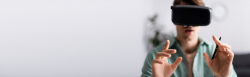 Männliche Führungskraft mit Virtual-Reality-Headset.
