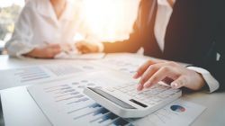 Eine Person tippt mit dem Finger auf ein Tablet-PC mit einer Investor-Relations-Präsentation