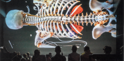Der Linzer medSpace: Auf einer über 50m2 großen Projektionsfläche werden CT- und MR-Scans in 8K und 3D gezeigt. Auch im Programm: Livestreams aus dem OP.