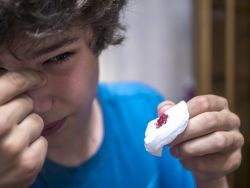 Schüler hat Nasenbluten.
