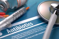 Antibiotika. medizinisches Konzept auf blauem Hintergrund.