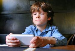 Eine junge Frau telefoniert mit ihrem Smartphone, während sie einen Tablet-PC hält