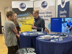 René Puchner (CGM) im Gespräch mit interessierten StudentInnen am CGM-Ausstellungsstand.