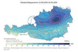 Niederschlagssummen in Österreich zwischen 12. und 16. September 2024.