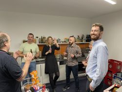 Würstlparty der CGM-Mitarbeiter im Sozialraum des 1.Stocks.
