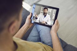 Patient nutzt die Videosprechstunde für ein Arztgespräch von zu Hause aus.