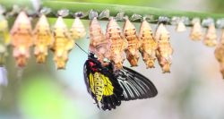 Transformation: Schmetterling schlüpft aus seinem Cocoon