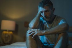 Depressiver, besorgter Mann, der unter Depressionskrise und Angstzuständen leidet.