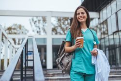 Betreuerin kommt zu ihrer Morgenschicht in die Sozialeinrichtung.