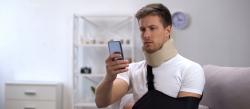 Eine junge Frau telefoniert mit ihrem Smartphone, während sie einen Tablet-PC hält