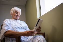 Ältere Patienten im Onlinegespräch mit Ihrem Betreuer.