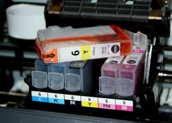 Eine junge Frau telefoniert mit ihrem Smartphone, während sie einen Tablet-PC hält