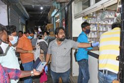 Menschen kaufen Medikamente - Burdwan Town, Purba Bardhaman District, Westbengalen, Indien